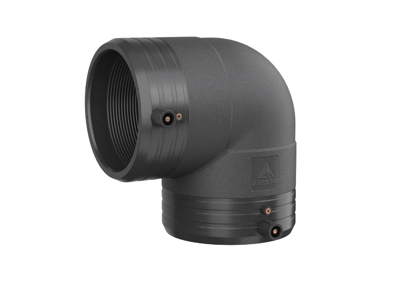 Отвод электросварной для труб, полиэтиленовый, низкого давления марки ПЭ 100, диаметром 20-355 мм, с углом поворота 90, для питьевой или технической воды, так и для транспортировки жидких газов, других химических жидких или газообразных веществ к которым стоек полиэтилен.